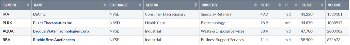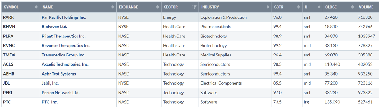 Di seguito i titoli che hanno creato un nuovo massimo a 52 settimane, e stanno sovraperformando l’indice di riferimento S&P500.