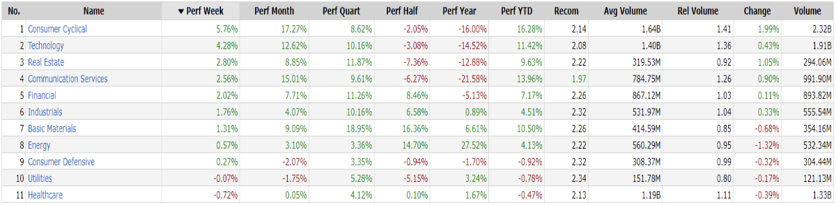 -Consumer Cyclical top sector con un RoC_5,D del +5.76%