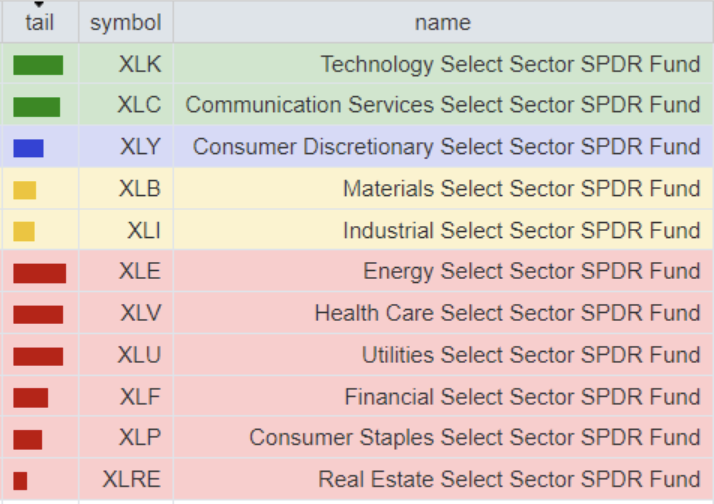 -Communication Services bottom sector con un RoC_5,D pari a +0.95%