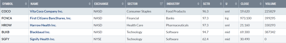 Di seguito i titoli che hanno creato un nuovo massimo a 52 settimane, e stanno sovraperformando l’indice di riferimento S&P500.