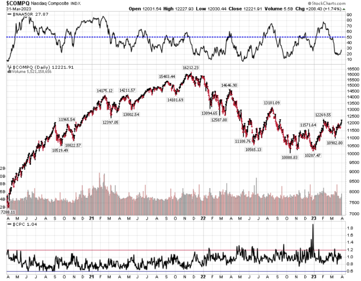 Divergenza $NAAR50 vs $COMP: aumento della percentuale di titoli che prezzano sopra la SMA50 rispetto alla settimana precedente, in convergenza con il rialzo dell’indice.