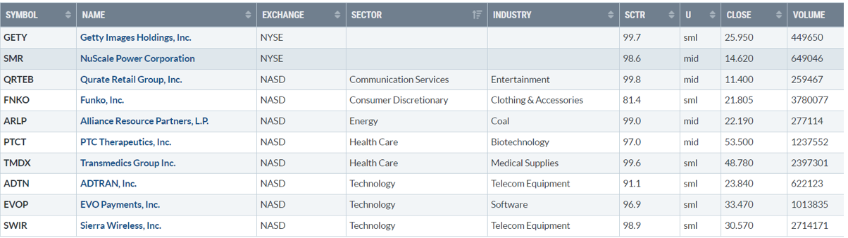 Di seguito i titoli che hanno creato un nuovo massimo a 52 settimane, e stanno sovraperformando l’indice di riferimento S&P500.
