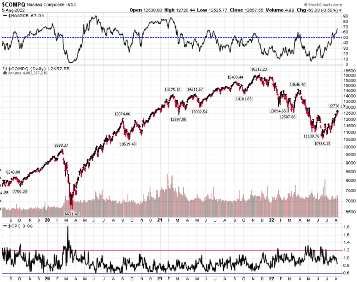 Divergenza $NAAR50 vs $COMP: aumento della percentuale di titoli che prezzano sopra la SMA50 rispetto alla settimana precedente, in convergenza con il rialzo dell’indice.