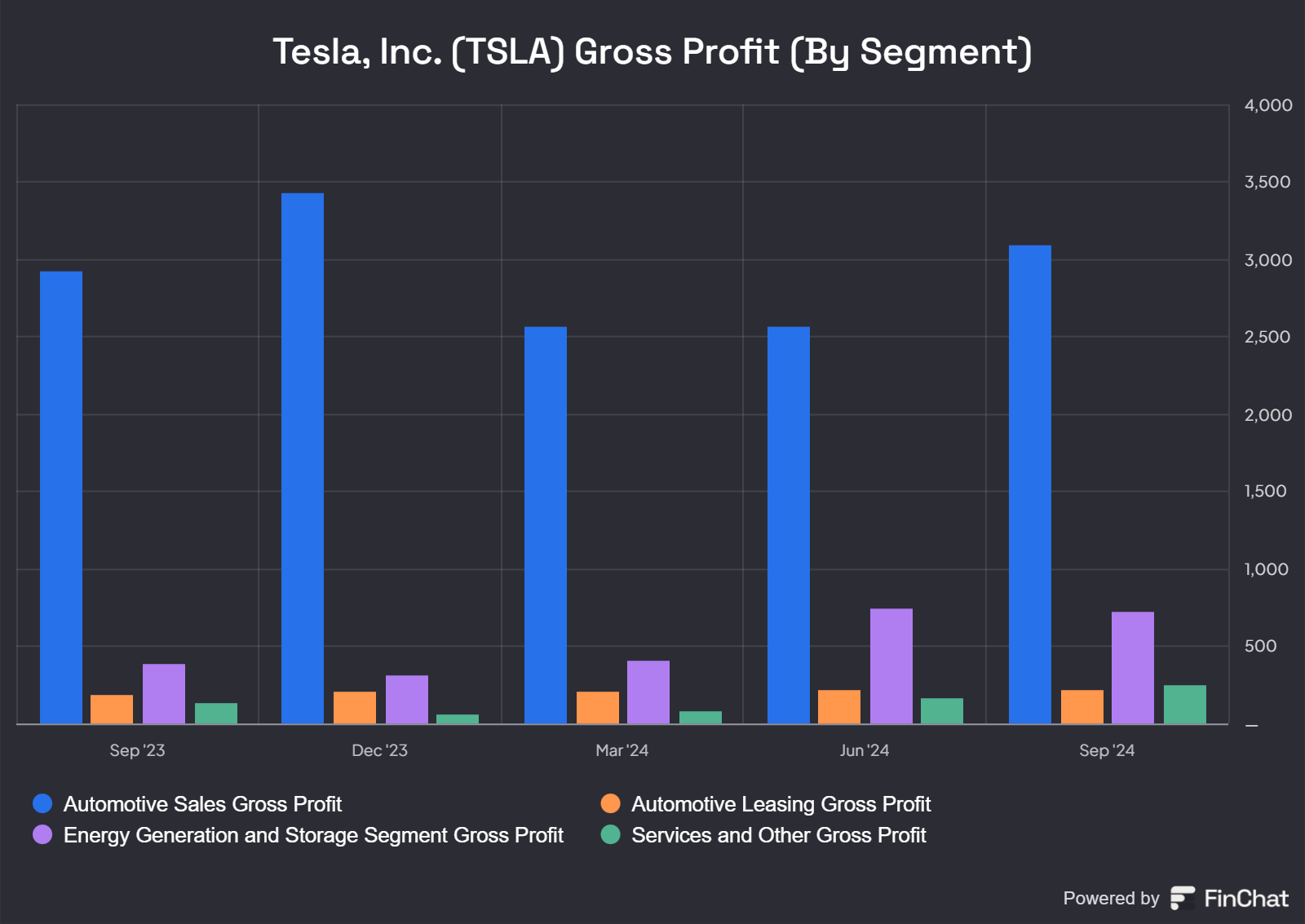 Nel terzo trimestre, tuttavia, la redditività è migliorata grazie ai risparmi sui costi delle materie prime e della logistica, portando i costi di produzione a un minimo storico. Sebbene gli ASP siano rimasti stabili, l’aumento dei costi di produzione ha inizialmente pesato sui margini. Tuttavia, il terzo trimestre ha segnato una ripresa, con un incremento di circa 240 punti base nei margini lordi automotive. Questo è avvenuto grazie a un profitto lordo medio per veicolo che è salito a circa $6.886, rispetto ai $5.921 del trimestre precedente.