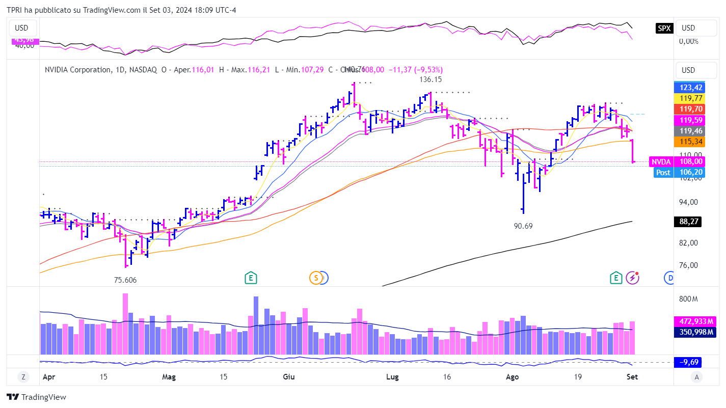 Il mercato azionario è rientrato dal fine settimana lungo del Labor Day con perdite significative, guidate da Nvidia e dal Nasdaq.