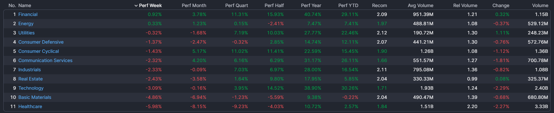 – Financial top sector con un RoC_5,D del +0,92%