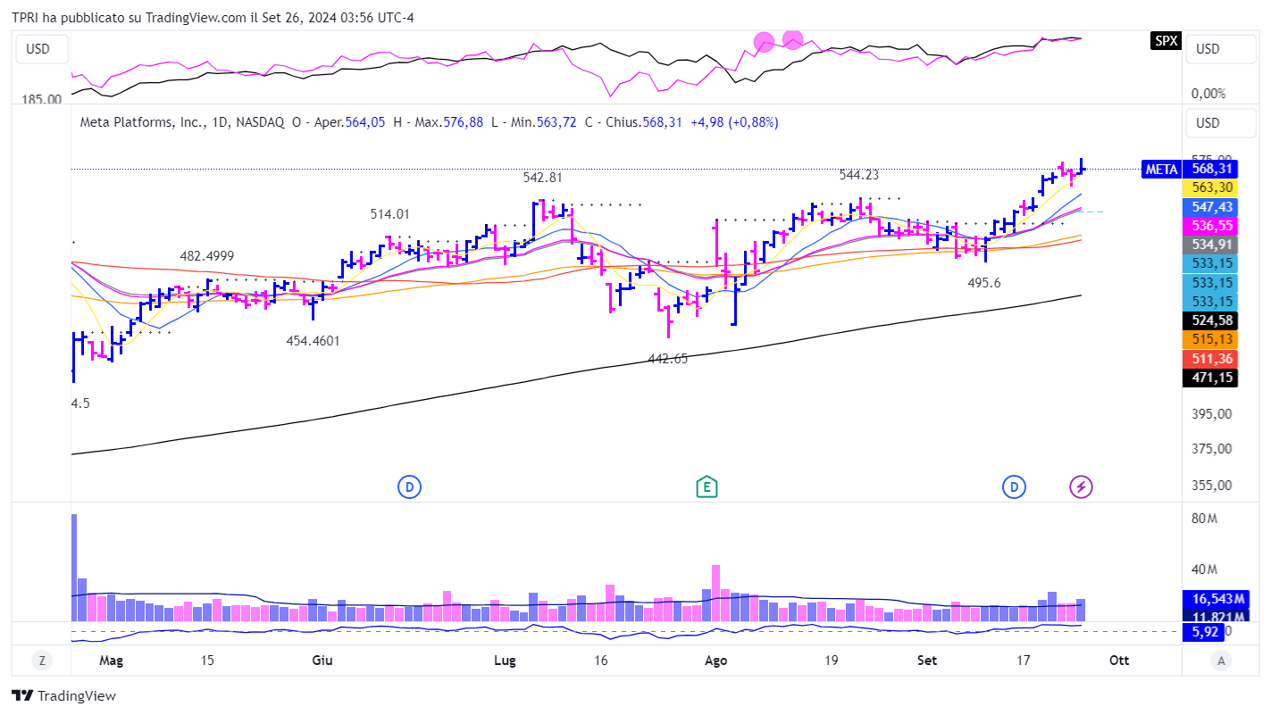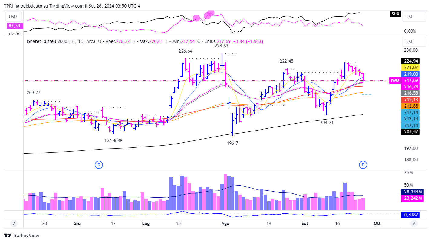 Le small cap hanno subito il vendite più intense. Il Nasdaq è avanzato leggermente aiutato da Nvidia, mentre Meta Platforms (META) ha toccato nuovi massimi quando Mark Zuckerberg ha presentato l’intelligenza artificiale e gli occhiali per la realtà aumentata durante la conferenza annuale Connect.