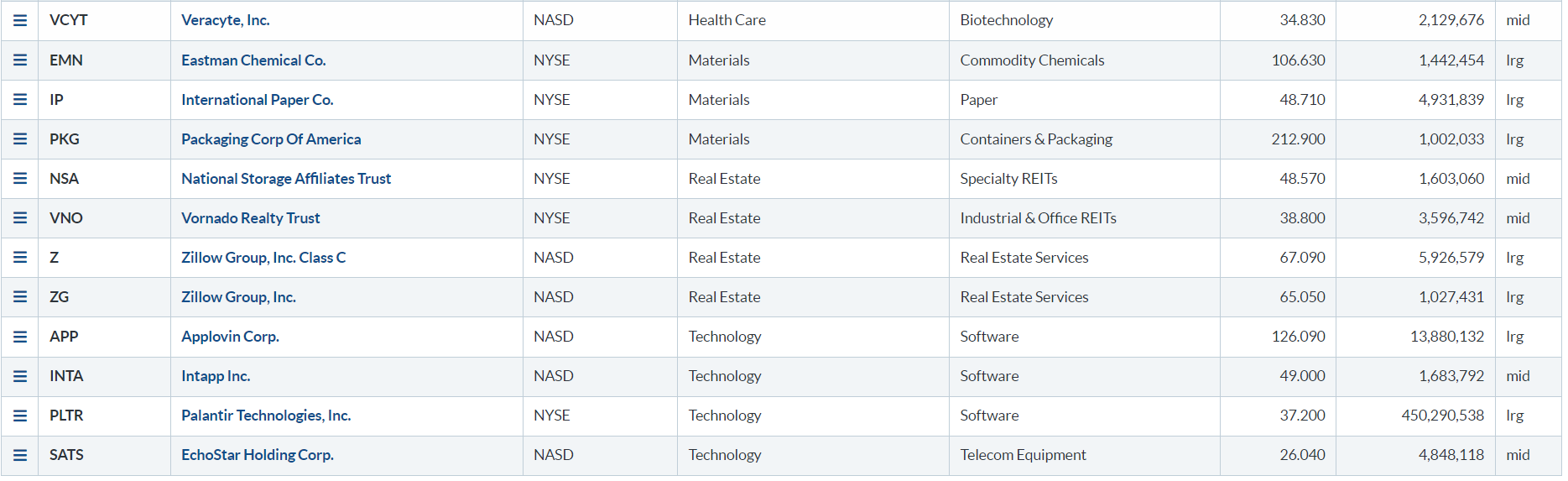 Di seguito i titoli che hanno creato un nuovo massimo a 52 settimane, e stanno sovraperformando l’indice di riferimento S&P500.