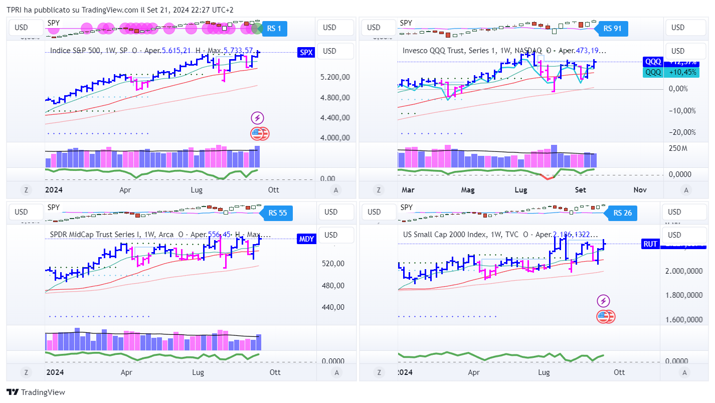 Con la decisione della Federal Reserve di decidere per un taglio da 50bps, l’S&P500 e il Dow Jones hanno raggiunto nuovi massimi storici, mentre il Nasdaq e il Russell2000 si trovano ora al di sopra delle loro medie mobili a 50 giorni.