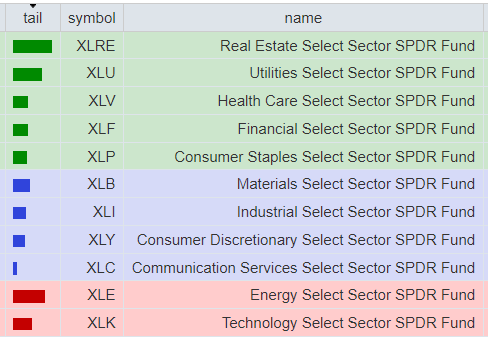 – Consumer Defensive bottom sector con un RoC_5,D pari a -1,15%