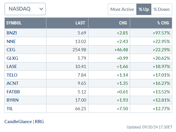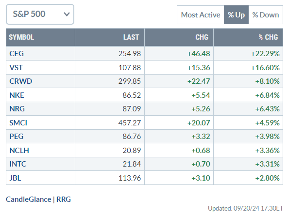Analisi azioni: Top 10% Market Movers S&P500 20/09/2024