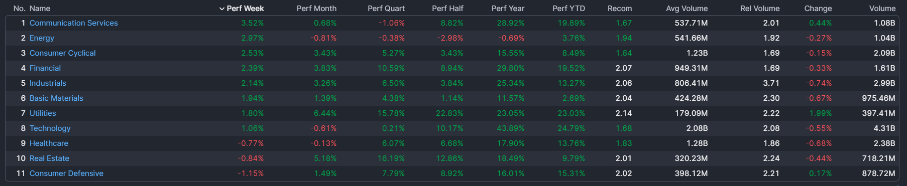 – Communication Services top sector con un RoC_5,D del +3,52%