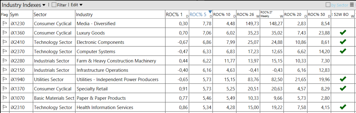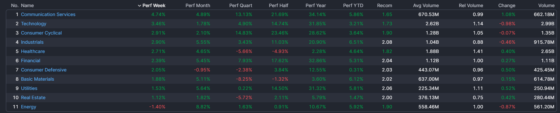 – Communication Services top sector con un RoC_5,D del +4,74%