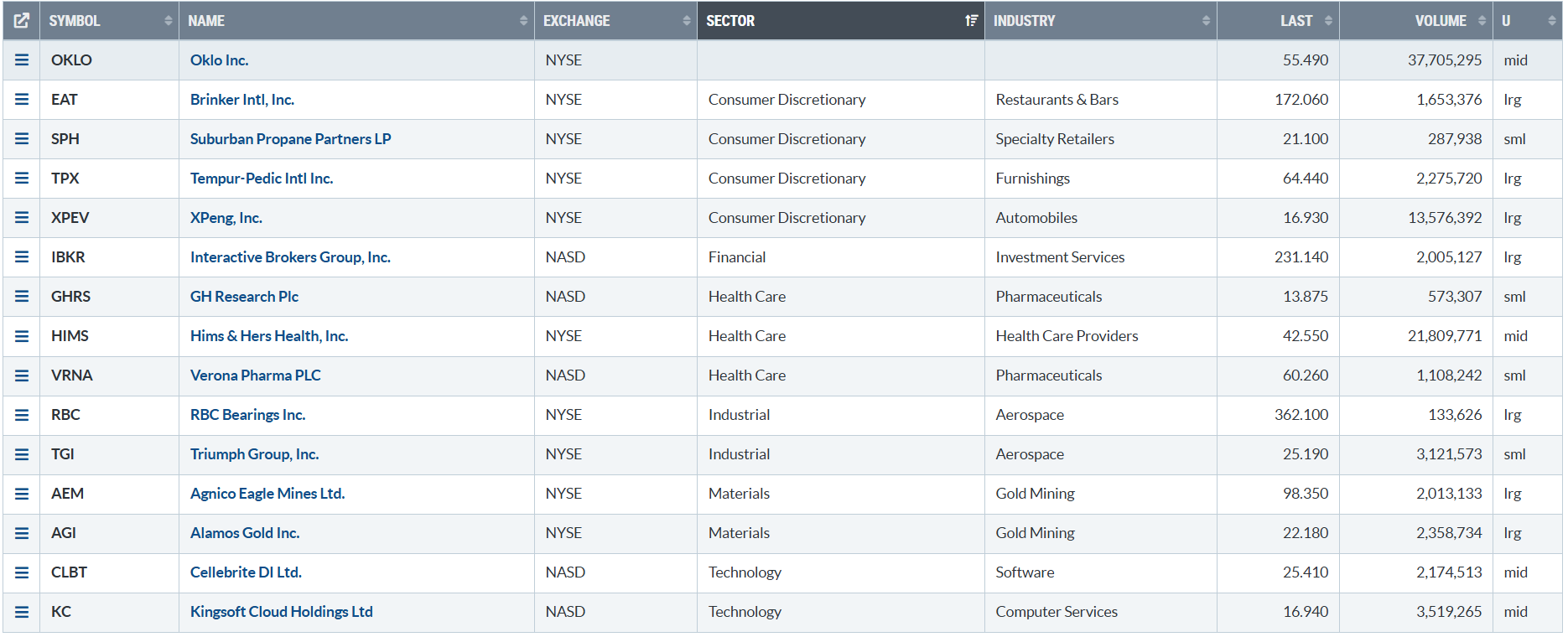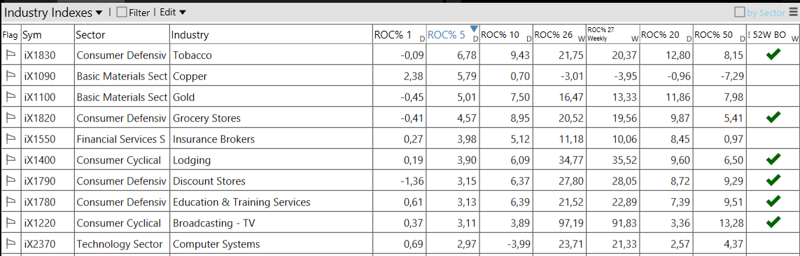 – Consumer Defensive top sector con un RoC_5,D del +1,38%