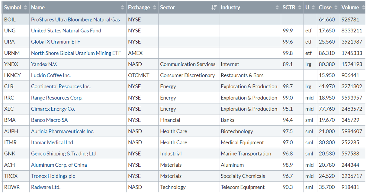 Di seguito i titoli che hanno creato un nuovo massimo a 52 settimane, e stanno sovraperformando l’indice di riferimento S&P500.