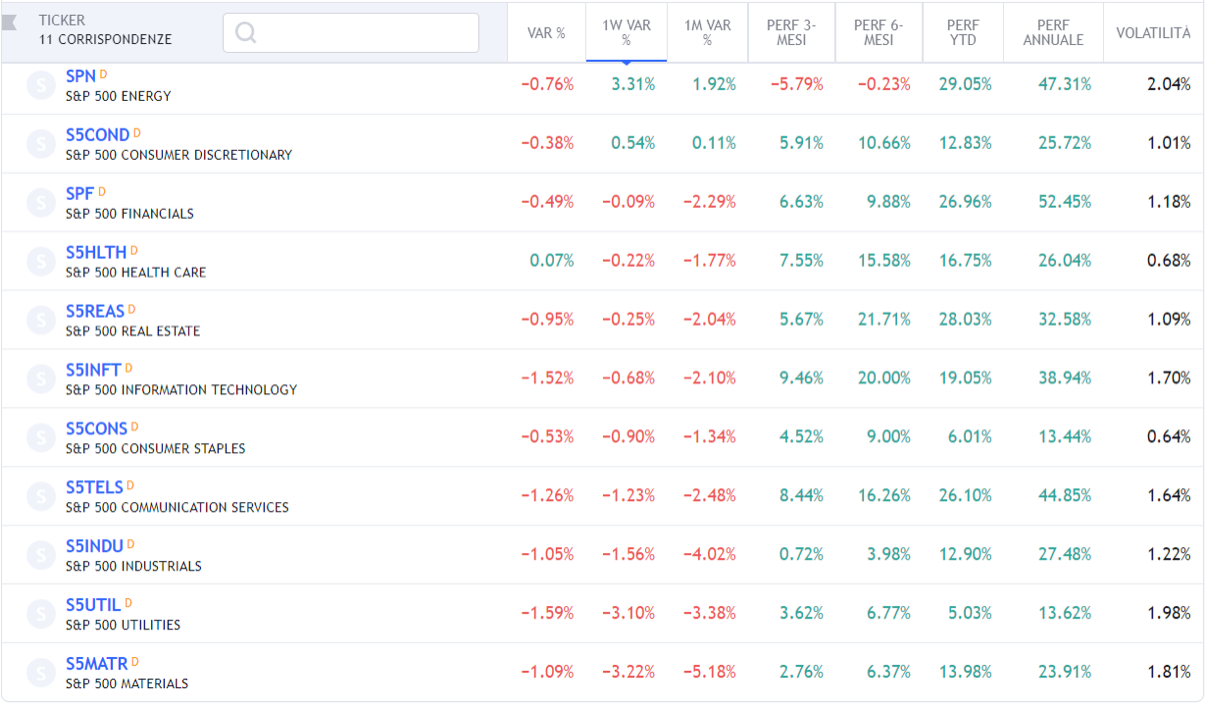 Weekly Performance Settori & Top10 Industrie 18-09-2021