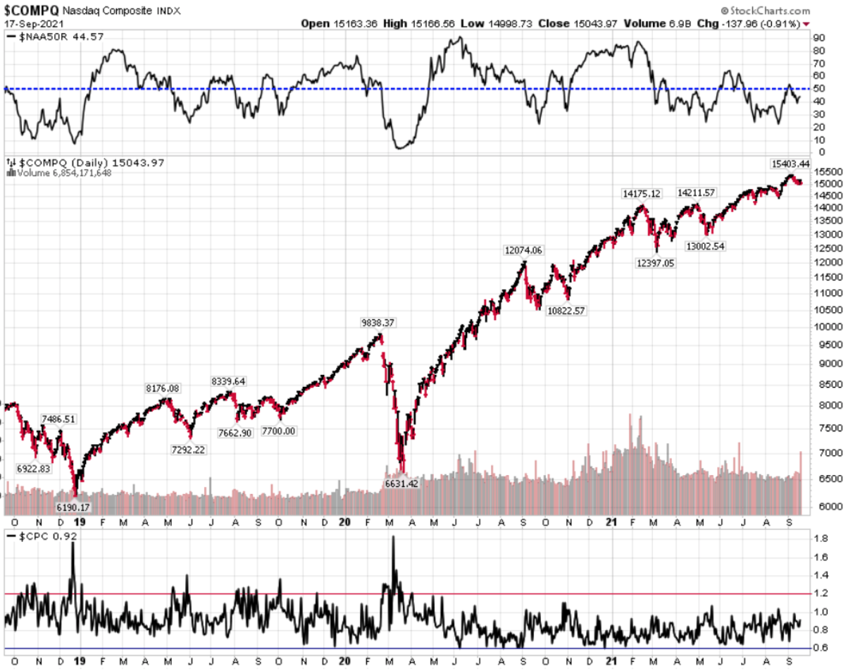 Divergenza $NAAR50 vs $COMP: percentuale di titoli che prezzano sopra la SMA50 invariata rispetto alla settimana precedente.