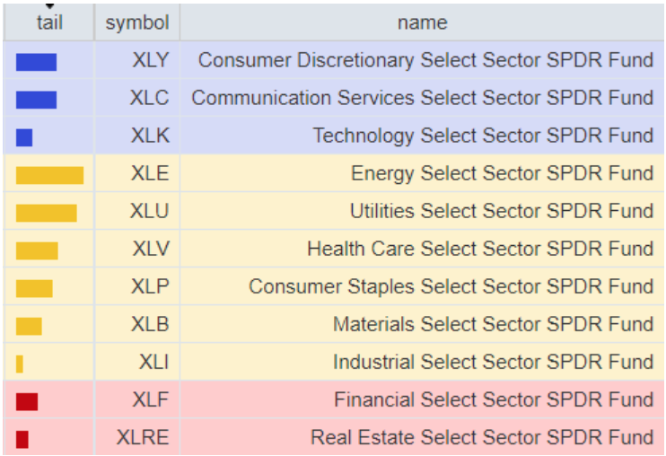 -Healthcare bottom sector con un RoC_5,D pari a +1.52%