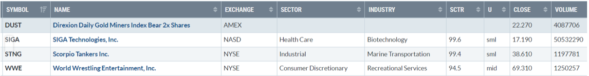 Di seguito i titoli che hanno creato un nuovo massimo a 52 settimane, e stanno sovraperformando l’indice di riferimento S&P500.
