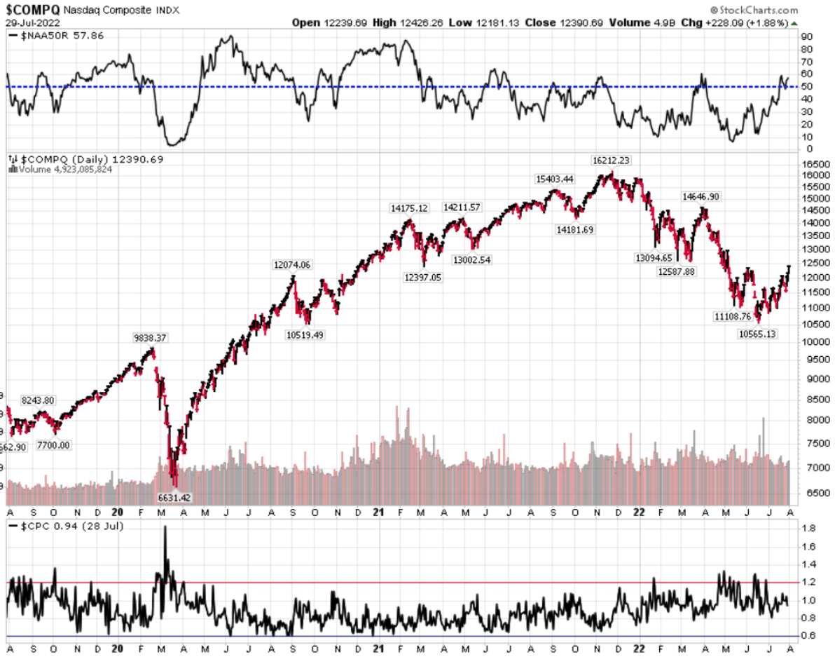 Divergenza $NAAR50 vs $COMP: aumento della percentuale di titoli che prezzano sopra la SMA50  rispetto alla settimana precedente, in convergenza con il rialzo dell’indice.