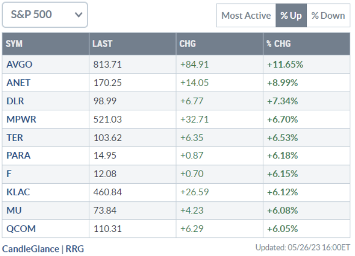 Analisi azioni: Top 10% Market Movers S&P500 26/05/2023