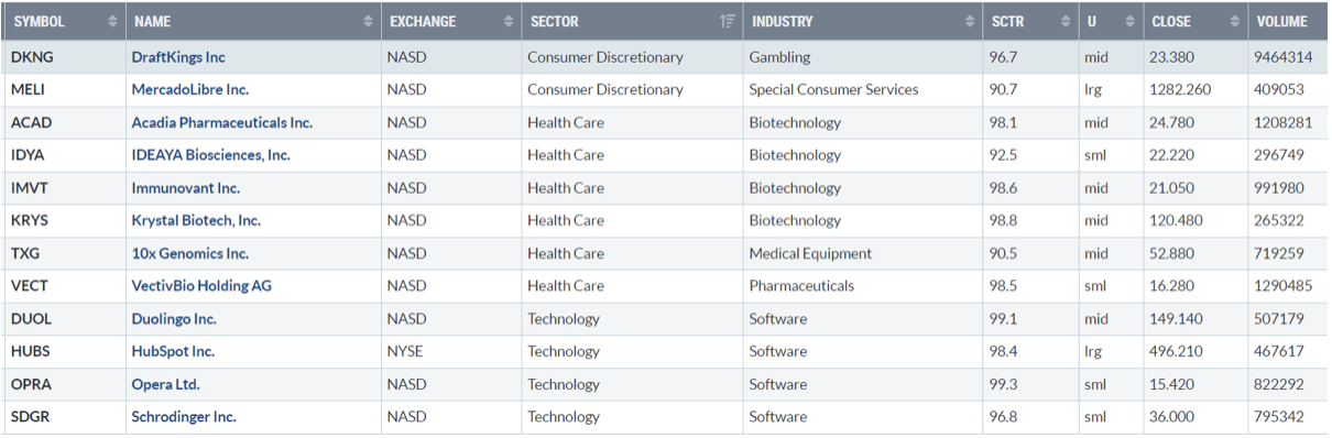 Di seguito i titoli che hanno creato un nuovo massimo a 52 settimane, e stanno sovraperformando l’indice di riferimento S&P500.
