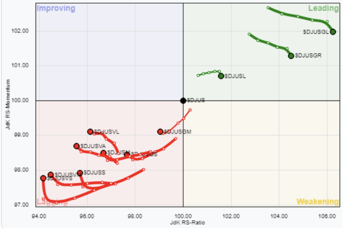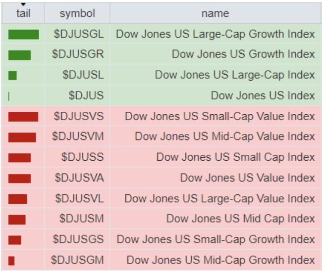 Dow Jones e Russell2000 ancora laggard. Il benchmark industriale ha addirittura testato la SMA200D prima di trovare il rimbalzo giovedì, mentre l’indice delle small-cap è ancora molto al di sotto dello stesso indicatore.