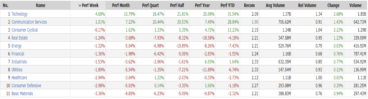 Weekly Performance Settori & Top10 Industrie 27-05-2023