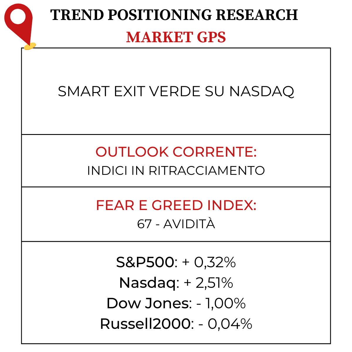 Lo Smart Exit weekly finalmente verde sul Nasdaq non è un liberi tutti, ma un altra tessera che si aggiunge al puzzle. Puzzle che settimana dopo settimana è sempre più completo.