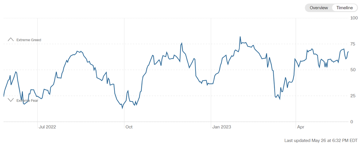 Il Fear&Greed Index stabile a quota 68, indicando l’avidità come sentiment prevalente. Una settimana fa il valore era pari a 68.